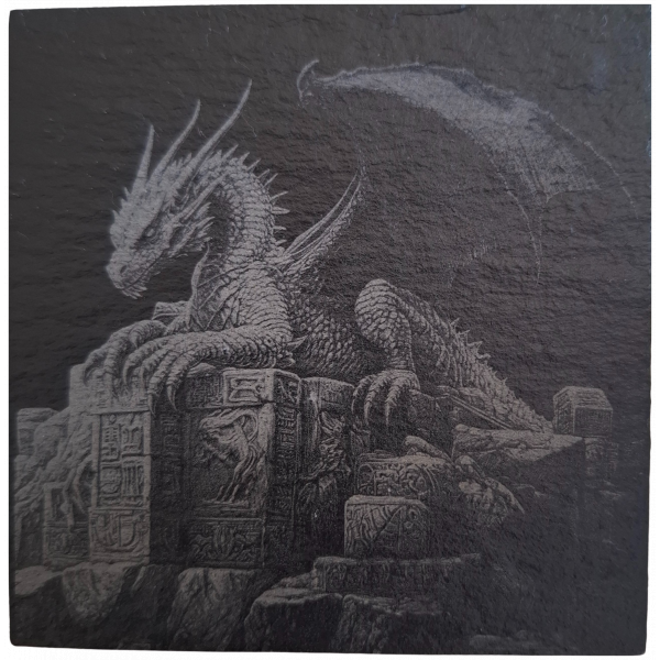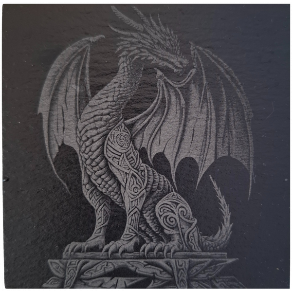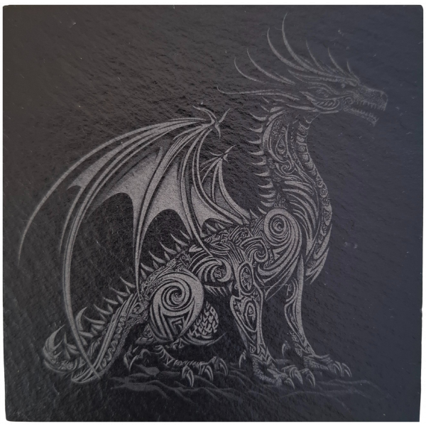 This collection showcases various dragon designs, inspired by classic fantasy, mythology, and epic storytelling. From fierce fire-breathing dragons to intricate Celtic and mythical dragon artwork, every design is precision laser engraved to create a bold, permanent finish that stands out beautifully against the natural slate surface. No two coasters are exactly alike, giving each piece a unique, handcrafted character.