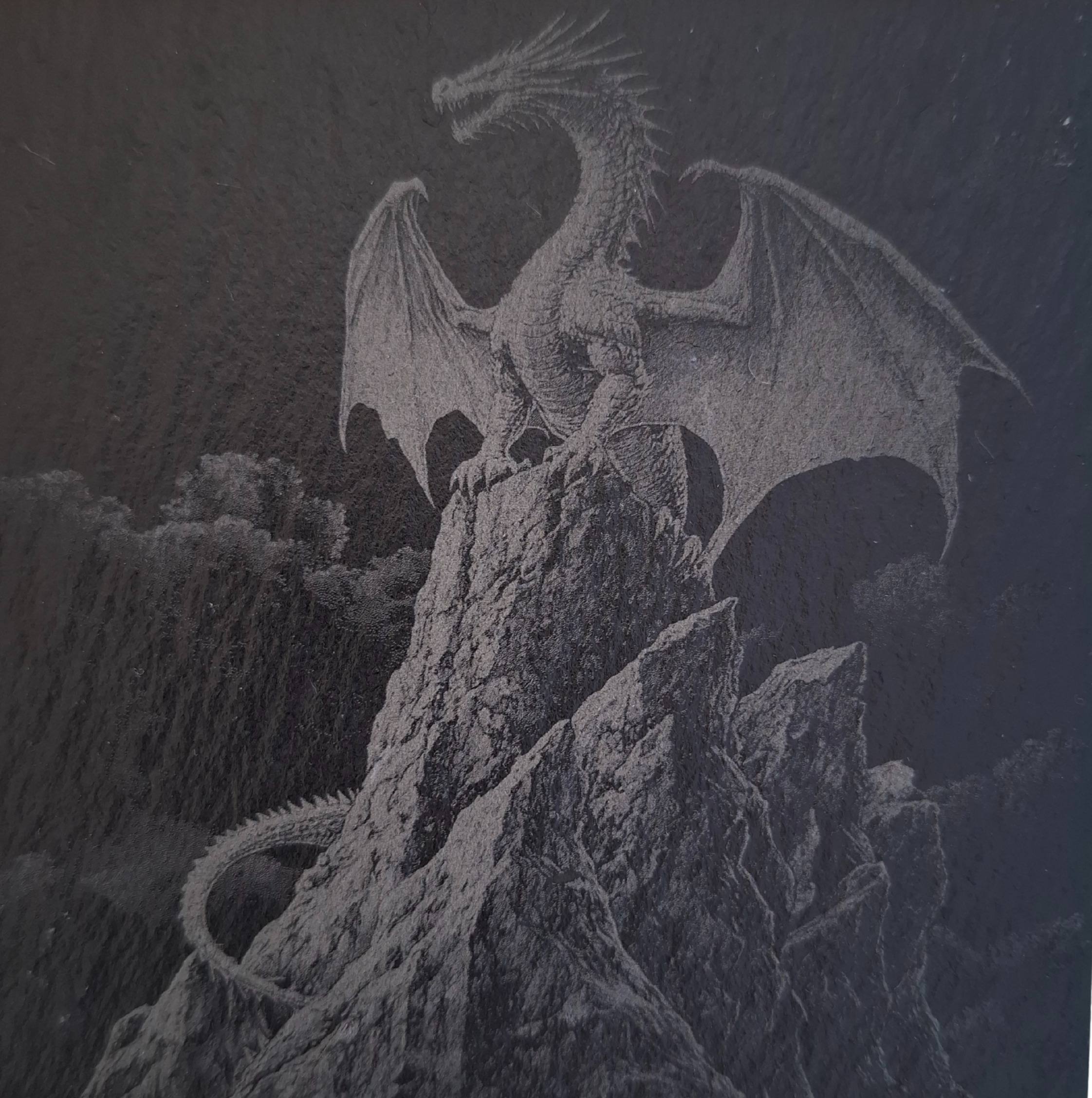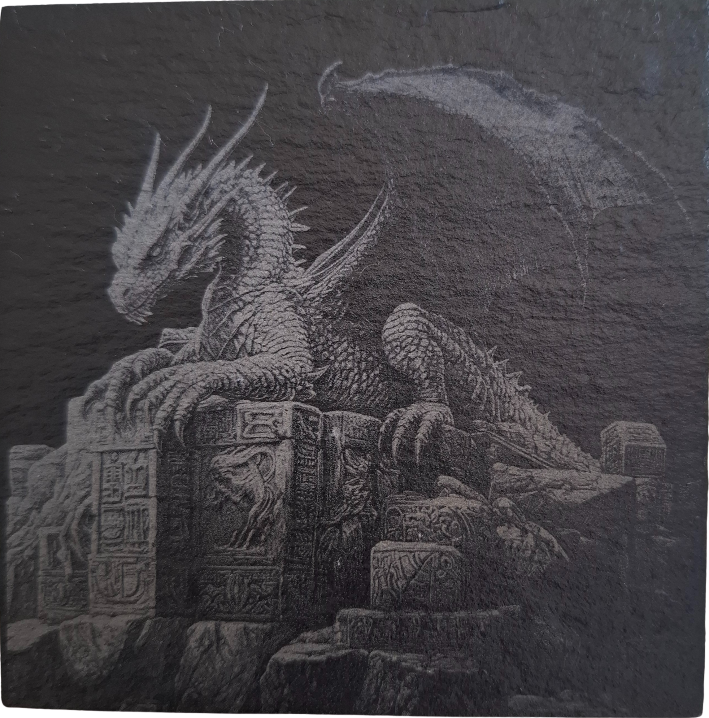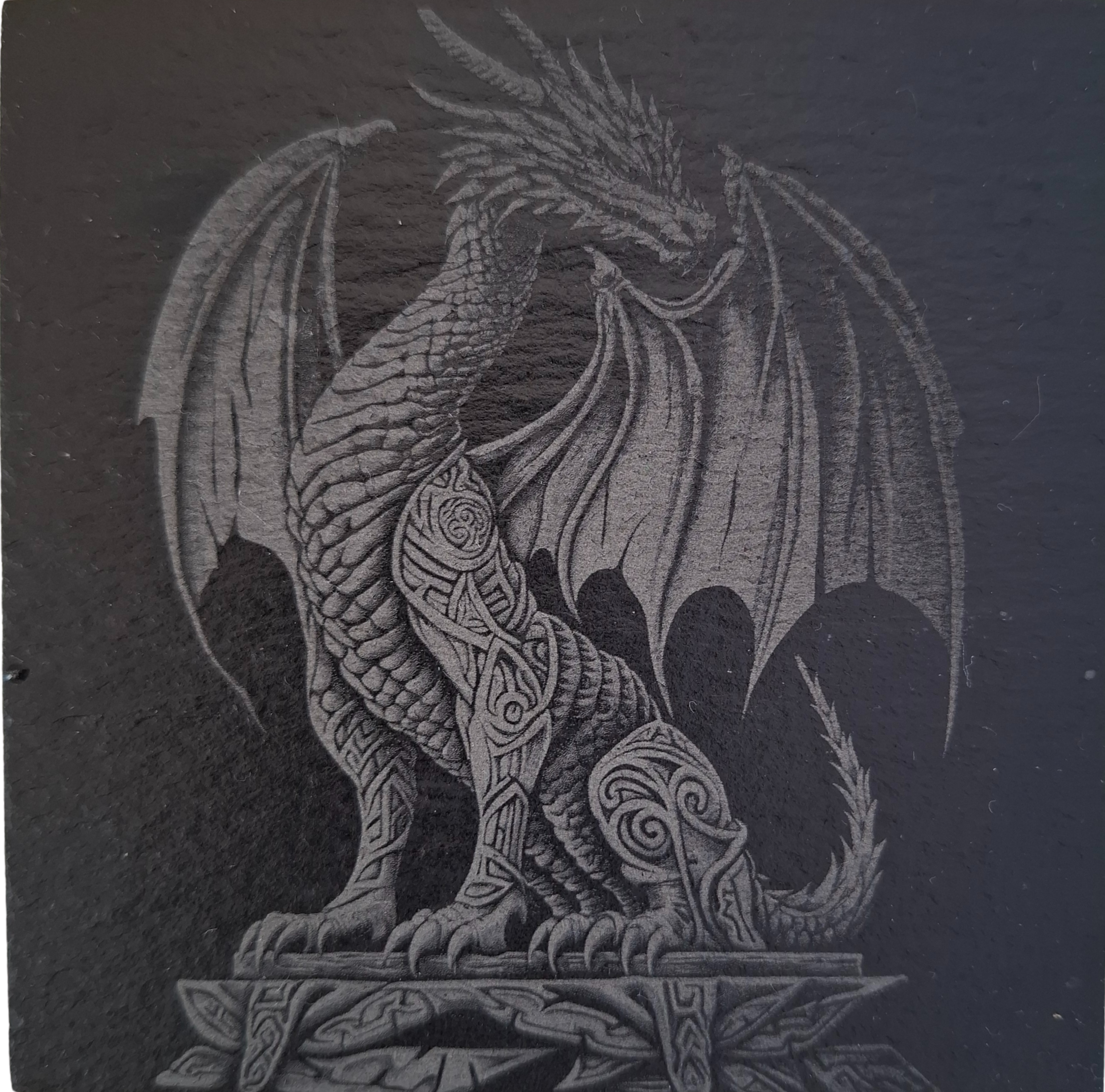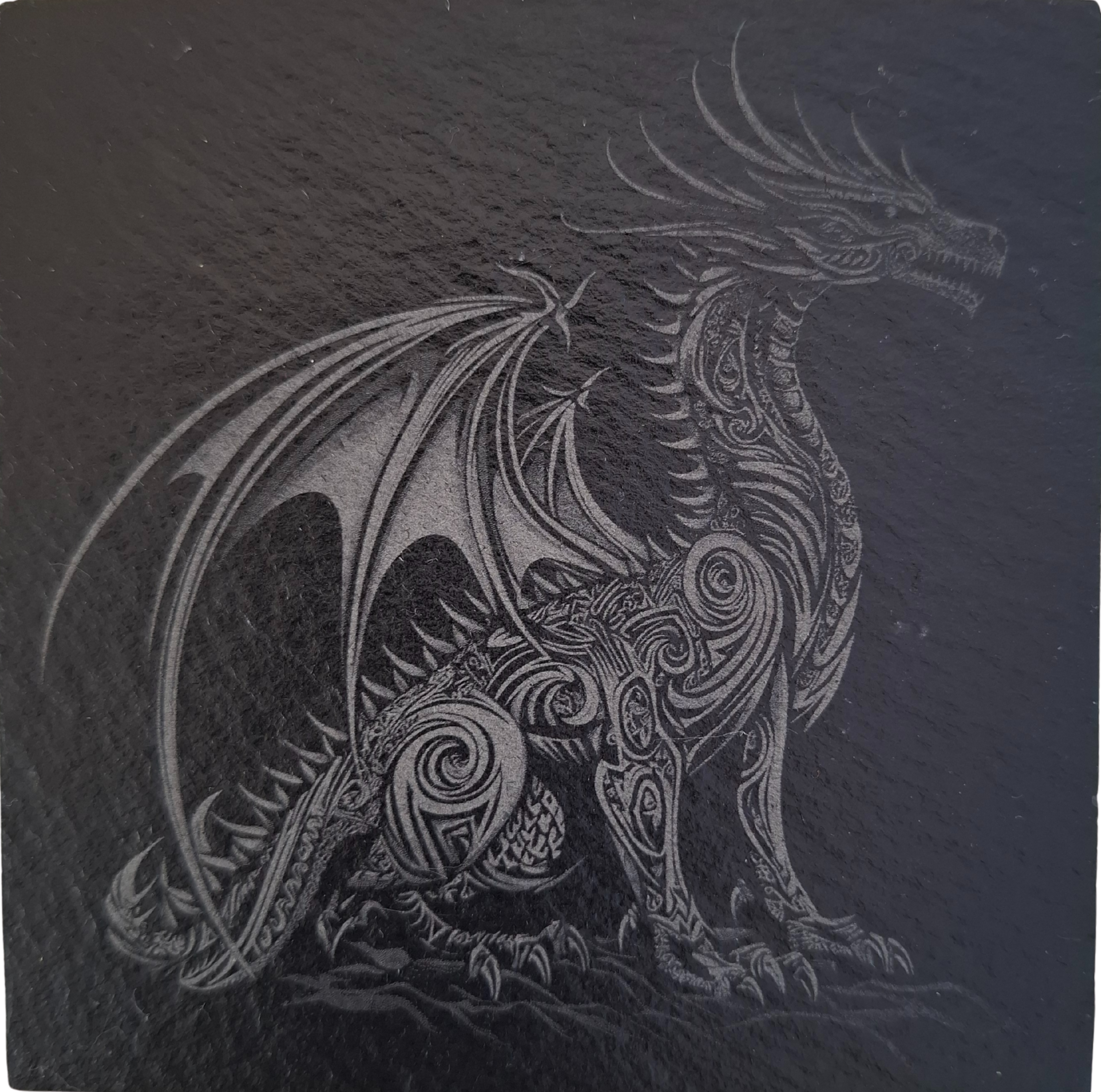 This collection showcases various dragon designs, inspired by classic fantasy, mythology, and epic storytelling. From fierce fire-breathing dragons to intricate Celtic and mythical dragon artwork, every design is precision laser engraved to create a bold, permanent finish that stands out beautifully against the natural slate surface. No two coasters are exactly alike, giving each piece a unique, handcrafted character.