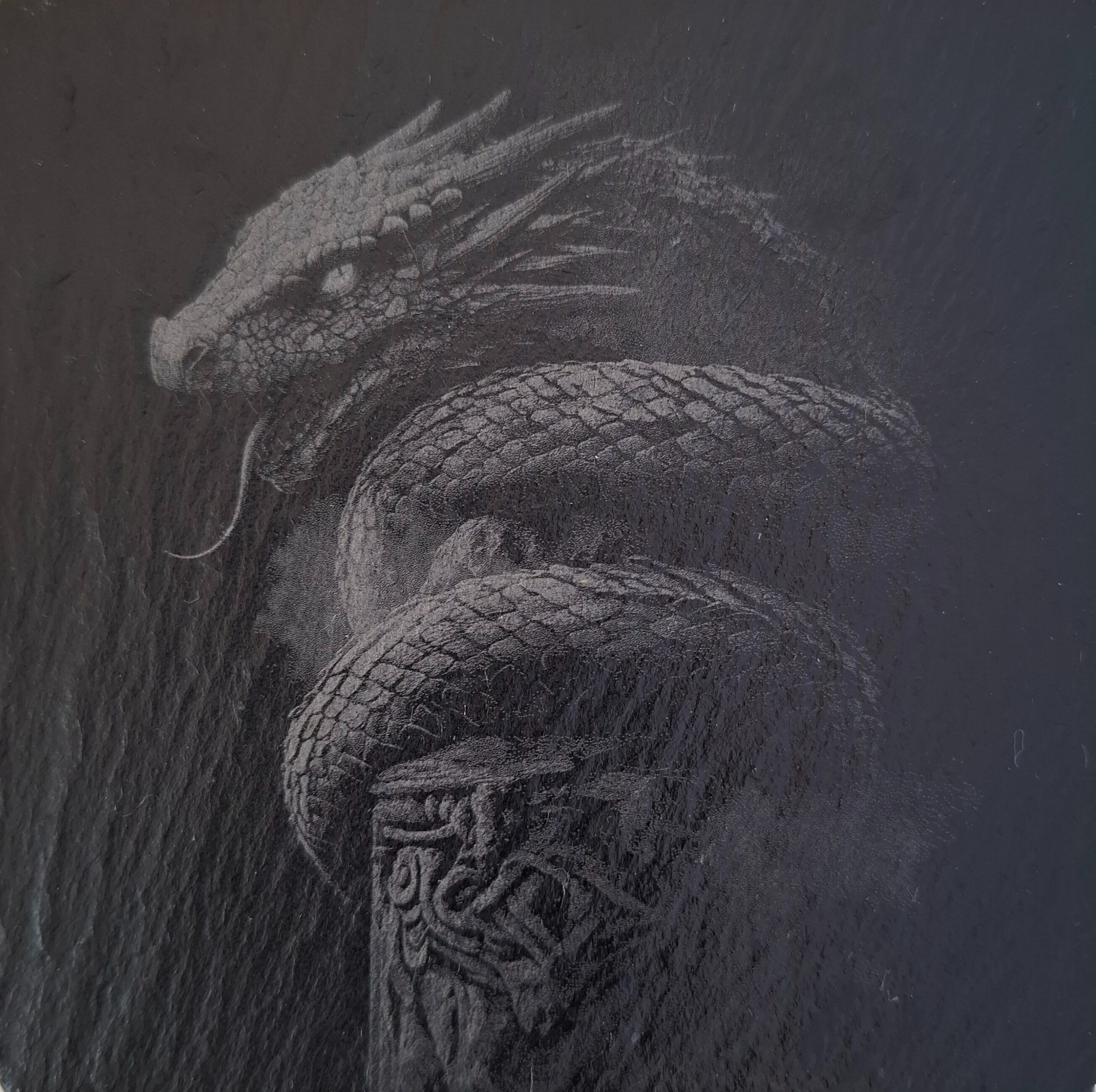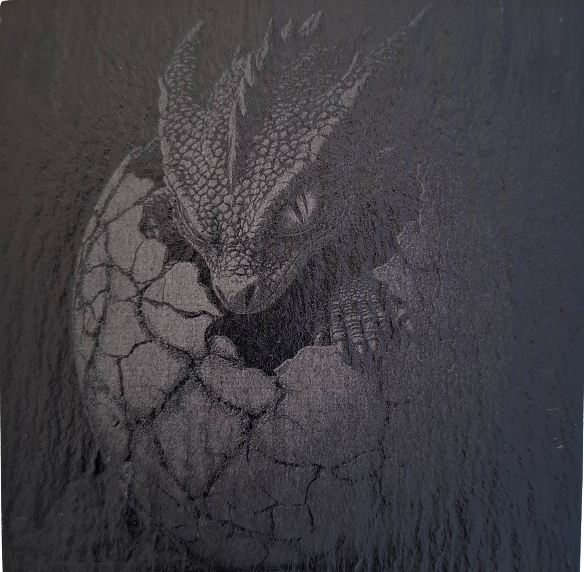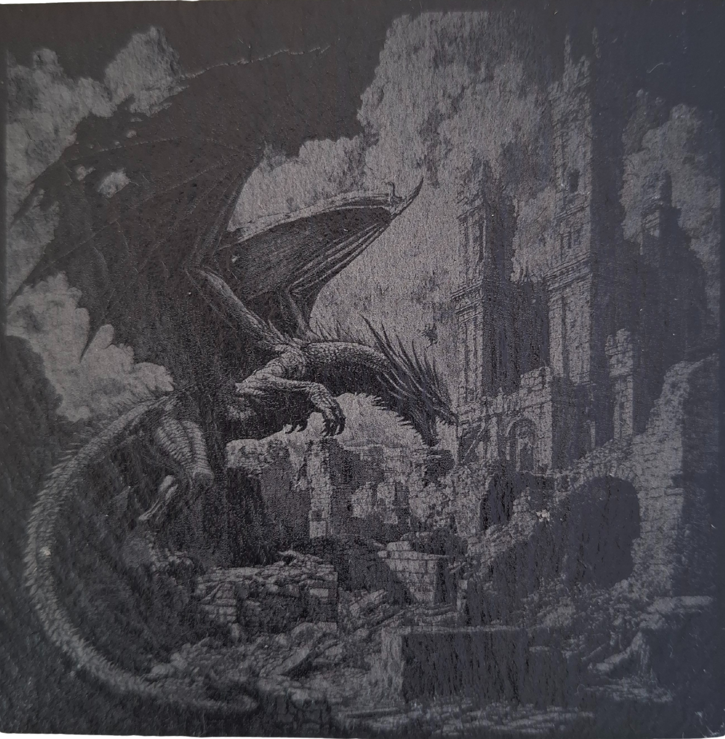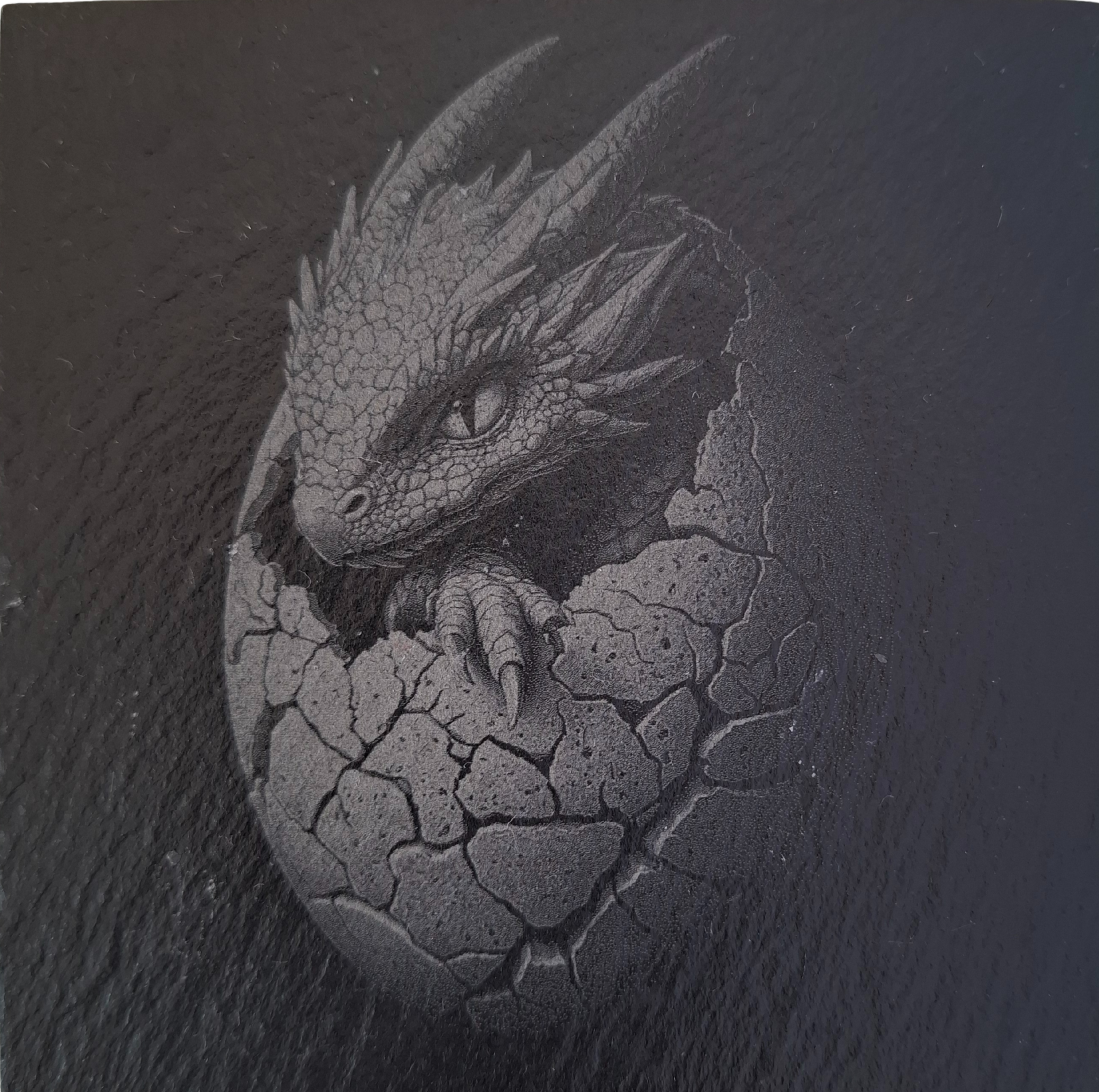 This collection showcases various dragon designs, inspired by classic fantasy, mythology, and epic storytelling. From fierce fire-breathing dragons to intricate Celtic and mythical dragon artwork, every design is precision laser engraved to create a bold, permanent finish that stands out beautifully against the natural slate surface. No two coasters are exactly alike, giving each piece a unique, handcrafted character.