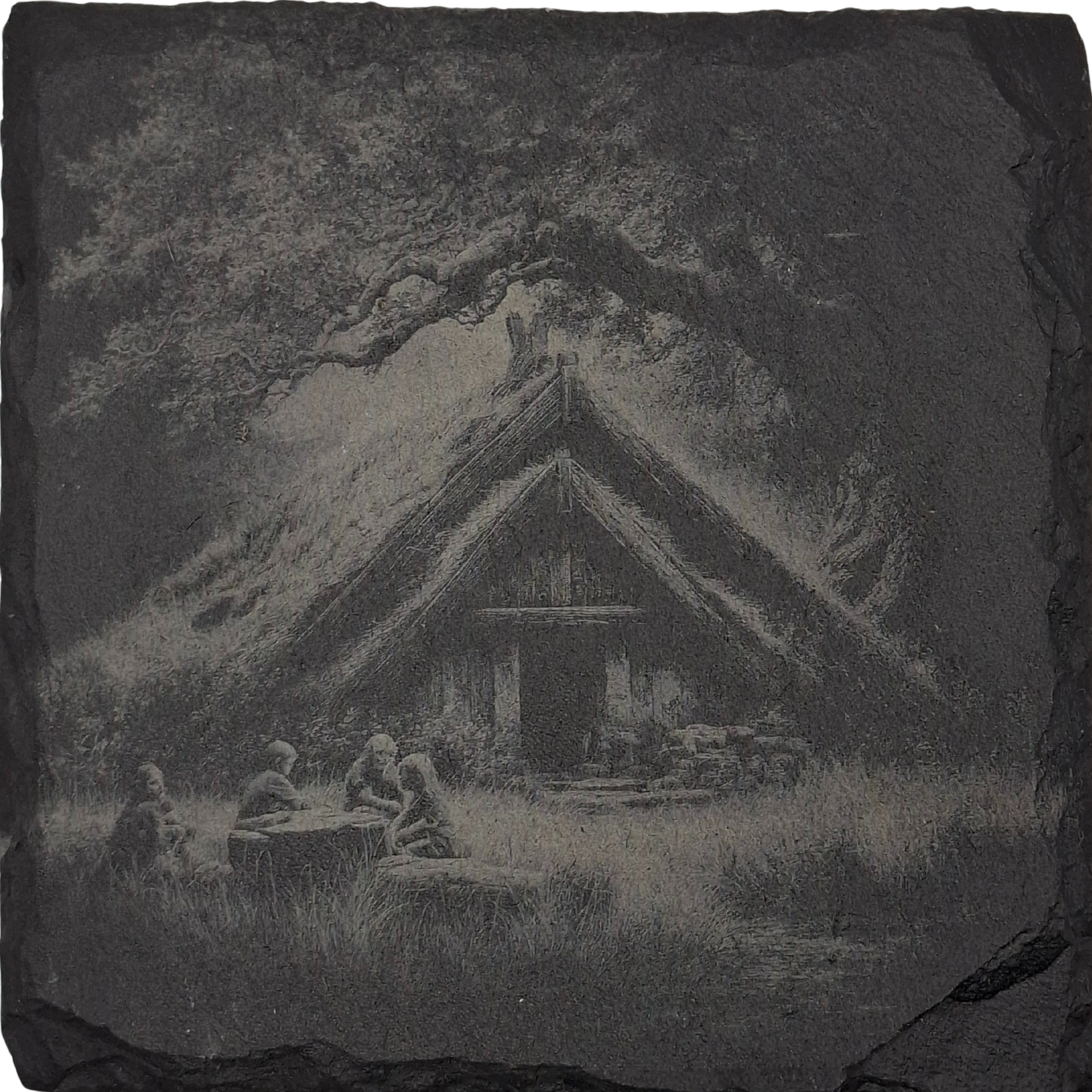 Each coaster is individually laser engraved, producing a sharp, high-contrast design that is permanently etched into the slate and will not fade or wear away. The natural texture and rough-cut edges of the slate ensure that every coaster is unique, giving them a rugged, authentic look that perfectly complements Viking, Nordic, and medieval-themed interiors.