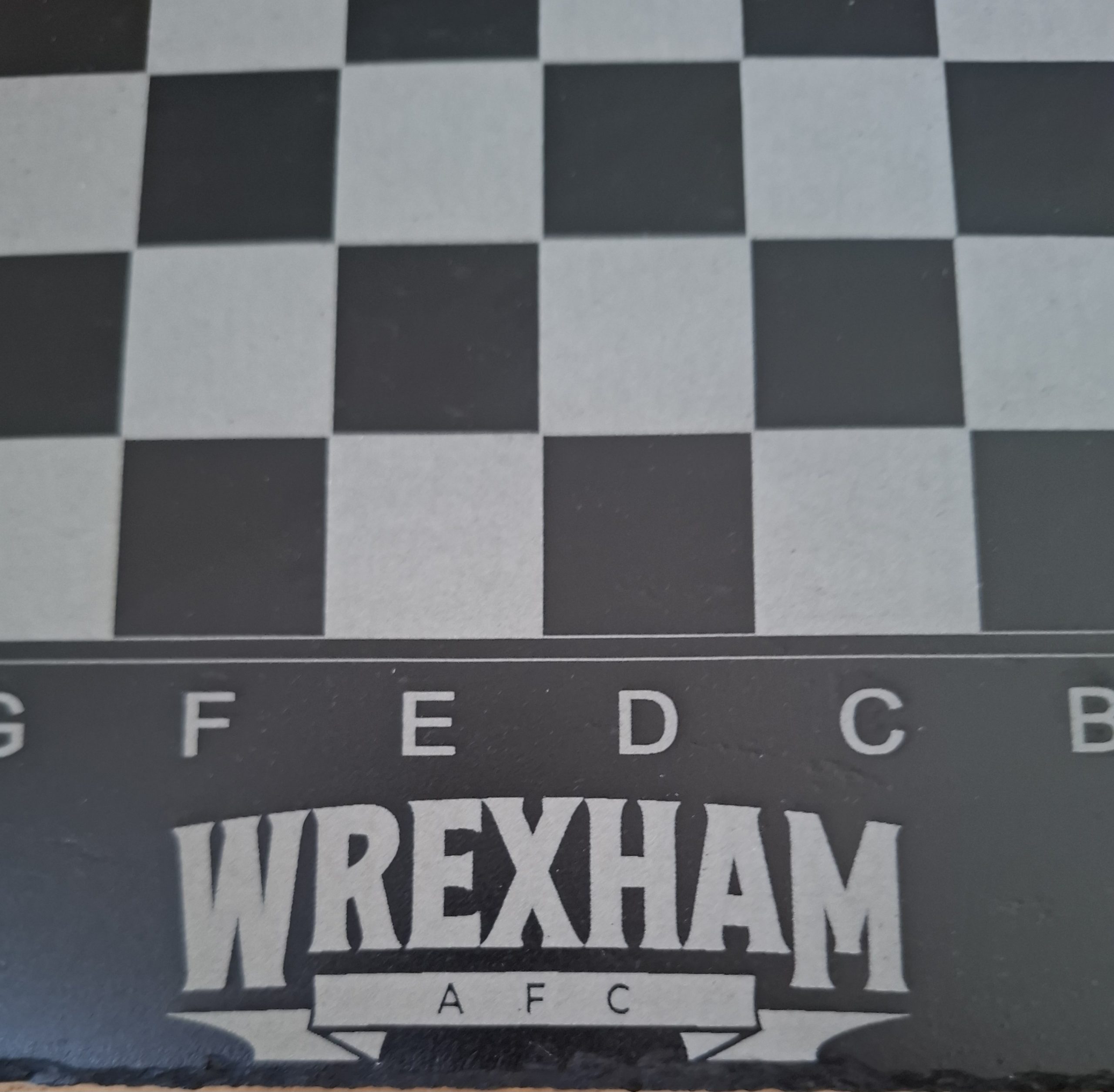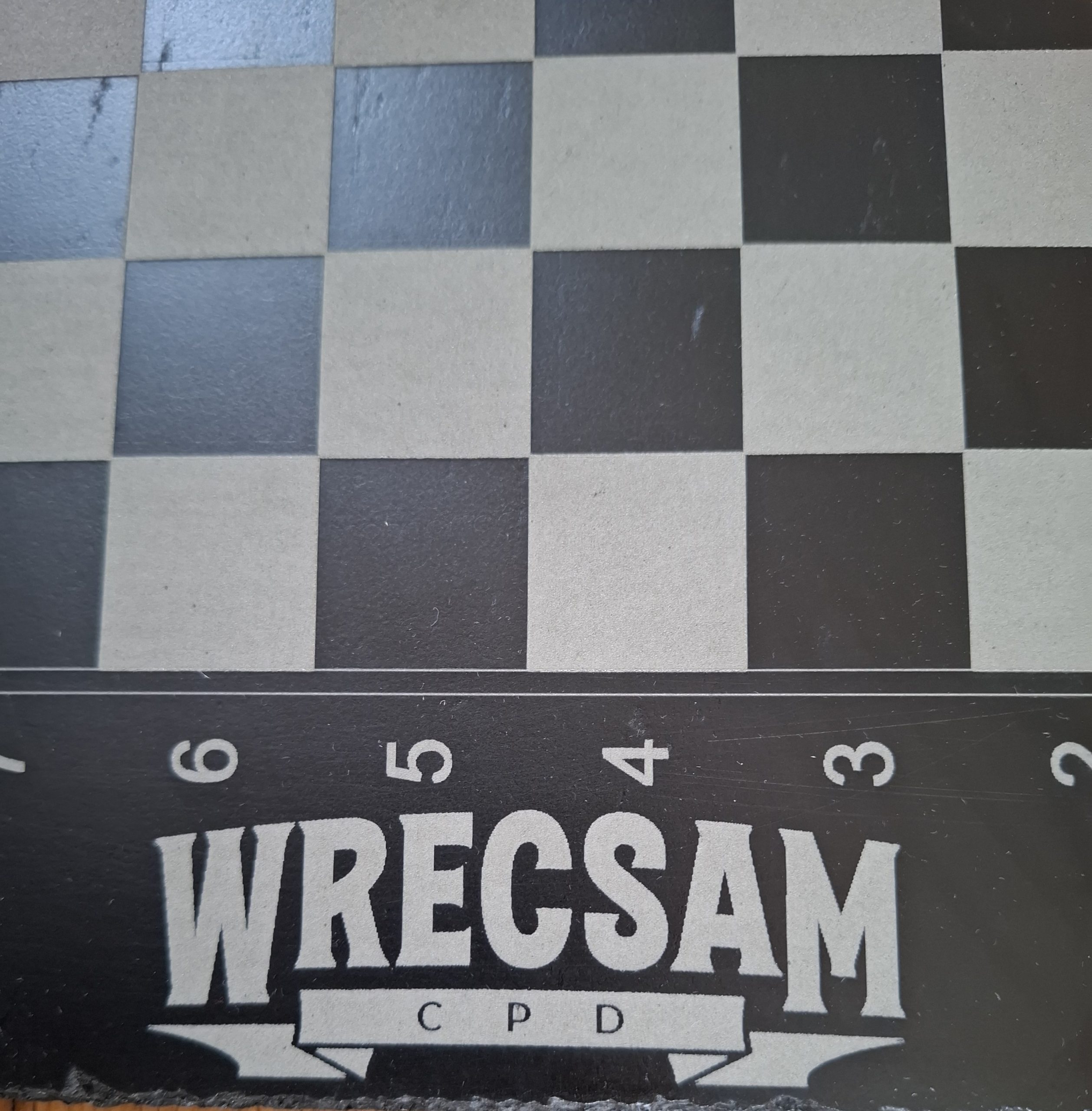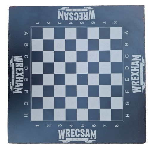 - Natural slate chess board with engraved Wrexham AFC & Wrecsam CPD wordmarks